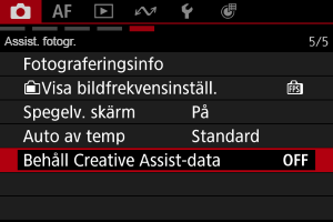 Om du lagrar Creative Assist-inställningarna som används med metoden [] behöver du inte längre välja effekten vid efterföljande fotografering.