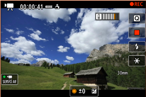 - Kameran kan bli het under filminspelning när den är ansluten via Wi-Fi. Använd ett stativ eller vidta andra åtgärder för att undvika handhållen inspelning.
