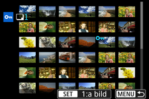 När du tittar på bilderna i indexvisning kan du ange den första och sista bilden i ett omfång för att genast skydda alla angivna bilder.