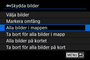 : Skydda bilder] kommer alla bilder i mappen eller på kortet att skyddas.