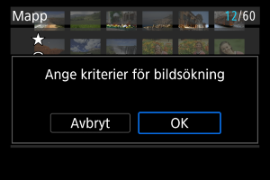 Du kan filtrera bildvisningen efter dina sökkriterier. Om du angett bildsökningskriterier kan du bara visa de hittade bilderna. Du kan också skydda, gradera, spela upp ett bildspel och tillämpa andra funktioner på filtrerade bilder.