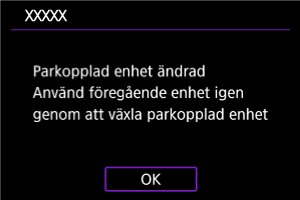 - Ett meddelande visas om kameran redan är parkopplad med en annan enhet. Välj [OK] för att avsluta nuvarande Bluetooth-anslutning.