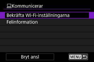 Du kan kontrollera inställningsinformationen för Wi-Fi-anslutningar ().