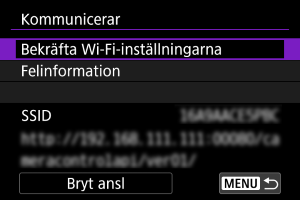 - När skärmen ovan visas på kameran kan du använda en smartphone, dator eller annan enhet för att öppna den indikerade URL:en från applikationen som har utvecklats för kamerakontroll.