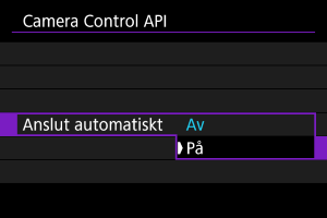 Om du väljer [På] upprättas automatiskt en anslutning nästa gång kameran startas efter att den har stängts av.