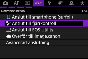 Anslutningsinställningar för enheter som du har anslutit till via Wi-Fi eller Bluetooth finns kvar på kameran. Du kan använda dessa inställningar för att återansluta till samma enhet.