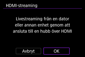 Välj det här alternativet för att streama över en HDMI-anslutning med en HDMI-kompatibel enhet.