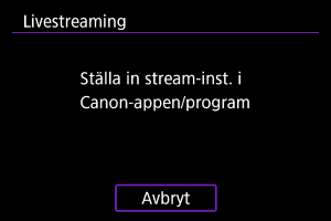 - Använd Camera Connect för att starta och stoppa streamingen. Du kan även trycka på knappen för filminspelning på kameran för att starta eller stoppa streamingen.