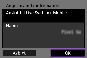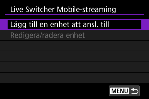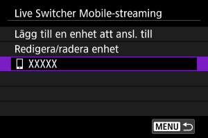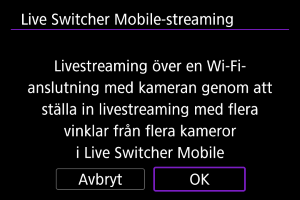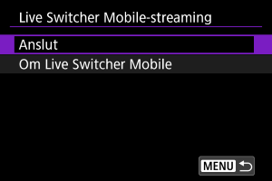Välj det här alternativet för att streama med Live Switcher Mobile på en smartphone via en Wi-Fi-anslutning.