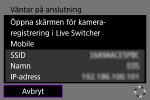 - Den här skärmen visas inte om kameran redan är ansluten till din smartphone.