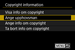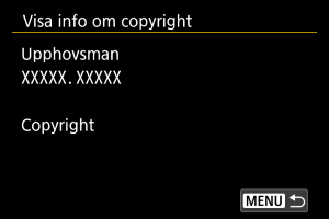 När du väljer [Visa info om copyright] i steg 2 kan du kontrollera angiven information om [Upphovsman] och [Copyright].