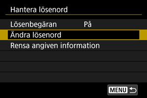 Du kan rensa lösenordet och annan information som angetts på kameran.