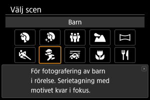 Använd läget [] (Barn) att fånga aktiva barn som rör på sig. Hudtoner ser livslika ut.