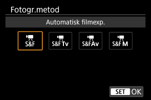 ska du välja en inspelningsmetod när du har tryckt på ikonen uppe till vänster eller öppnat skärmen [Välj scen] eller [Fotogr.metod] i [