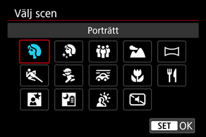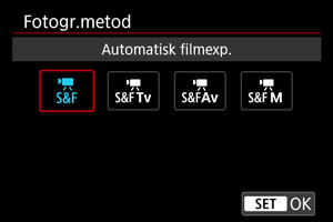 Med inställningsratten satt till (för stillbilder eller filmer) eller