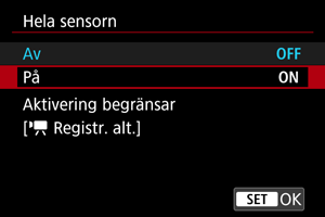Filmer kan spelas in med samma sidförhållande (3:2) som stillbilder med [Fullformat] när [På] är valt. Detta är användbart när filmer exporteras med olika sidförhållanden för redigering.
