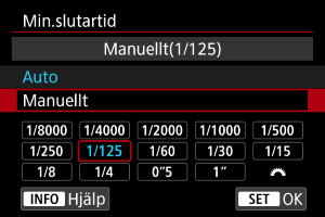 Ställ in önskad minsta slutartid.