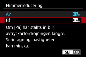 och välj [Flimmerreducering] och tryck sedan på knappen