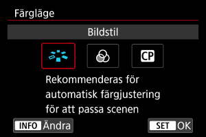 - Om du inte har fått den färgton du vill ha med [Auto] väljer du en annan bildstil.