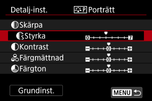 - Genom att välja [Grundinst.] i steg tre kan du återställa parameterinställningar för respektive bildstil till standardinställningarna.
