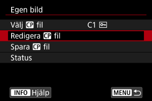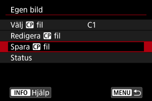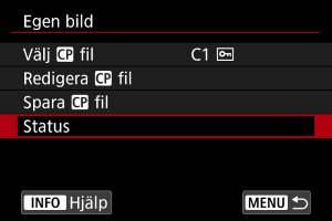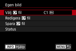 Du kan granska inställningarna för anpassade bildfiler i menyn [Egen bild].
