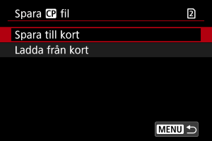 Redigerade anpassade bildfiler kan sparas på ett kort och användas med andra kameror av samma modell.