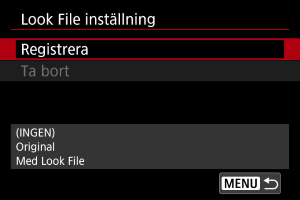 - Utför registreringen av look-filen sista om du ska redigera en anpassad bildfil och en look-fil samtidigt.