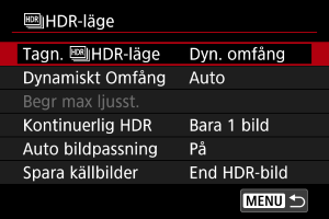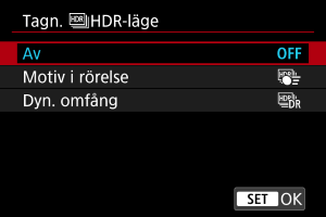 - Välj [Av] för normal icke-HDR-fotografering.