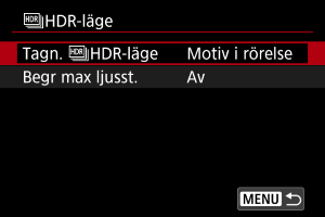HDR-läge] till [Av].