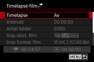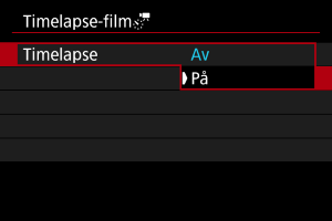 - Ställ in [Timelapse] på [Av] för att avbryta inspelningen av timelapse-filmer.