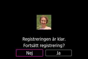 När följande skärm visas kan en annan persons ansikte registreras.