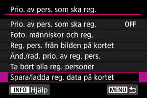Välj [Ladda från kort (lägg till)] för att föra över registrerade data från kortet till kameran. Inga registrerade data som finns på kameran raderas.