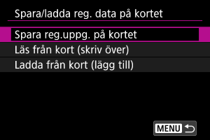 Välj [Spara/ladda reg. data på kortet].