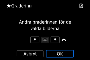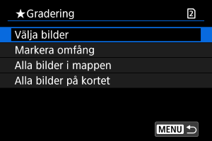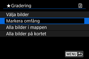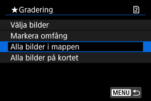 - När du väljer [Alla bilder i mappen] eller [Alla bilder på kortet] kommer alla bilder i mappen eller på kortet att graderas under [