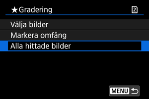 - Om du väljer [Alla hittade bilder] kommer alla bilder som filtrerats med hjälp av sökkriterierna att graderas som specificerade.