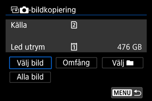 - Med [Välj bild] kan bilder i flera mappar inte kopieras samtidigt. Välj bilder som ska kopieras från en mapp i taget.