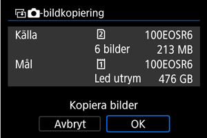 - Kontrollera informationen på käll- och målkortet och välj sedan [OK].