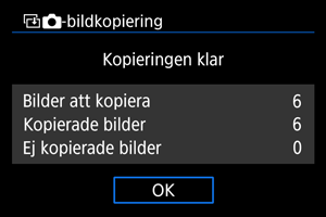 - Resultaten visas när kopieringen är klar. Välj [OK] och återgå till skärmen i steg två.