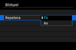 - Ställ in inställningarna [Tidsintervall] och [Repetera] (upprepad bildvisning) för stillbilderna.