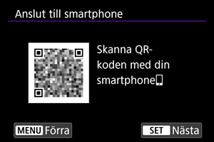 - Om Camera Connect inte är installerat kan du använd din smartphone för att skanna QR-koden på skärmen. Gå till Google Play eller App Store för att installera Camera Connect och tryck sedan på