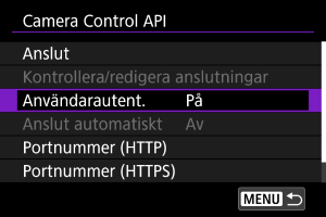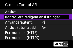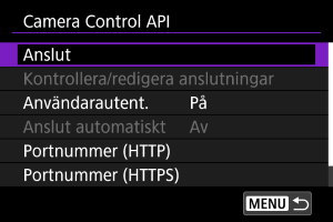 Använda Camera Control API:et (CCAPI)