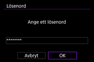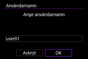 - Ange kameranamnet när kameran visar [Registrera ett namn för att identifiera kameran. Det här namnet används för Wi-Fi-anslutningar och Bluetooth-anslutningar.].