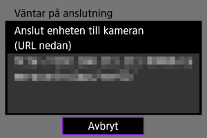 - När skärmen ovan visas på kameran kan du använda en smartphone, dator eller annan enhet för att öppna den indikerade URL:en från applikationen som har utvecklats för kamerakontroll.