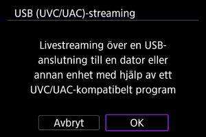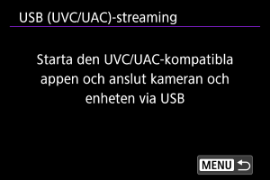 Välj det här alternativet för att använda UVC/UAC-kompatibla applikationer via en USB-anslutning till en dator eller annan enhet.