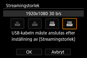 Du kan ställa in streamingkvaliteten. Slutför den här inställningen efter att du har anslutit enheterna via USB.
