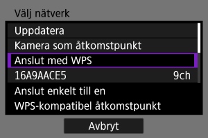 Välj [Anslut med WPS] på skärmen [Välj nätverk].