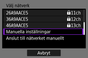 Välj [Manuella inställningar] på skärmen [Välj nätverk].