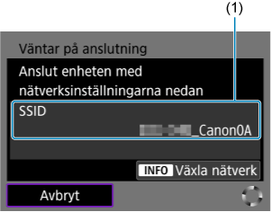 Nätverksinställningar för kameran som åtkomstpunkt konfigureras automatiskt.