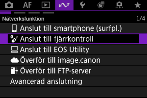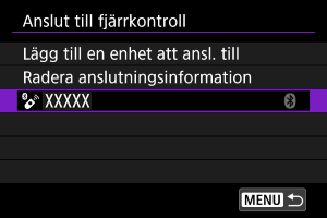 Anslutningsinställningar för enheter som du har anslutit till via Wi-Fi eller Bluetooth finns kvar på kameran. Du kan använda dessa inställningar för att återansluta till samma enhet.
