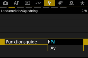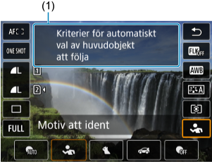 En kort beskrivning av funktioner och alternativ kan visas när du ställer in fotograferingsmetoden eller använder Snabbkontroll.
